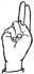 На ћирилици написано БЕРИША ТОРБИЦА састоји се из 13 слова [?]. Исписано ћириличном једноручном азбуком за глувонеме: